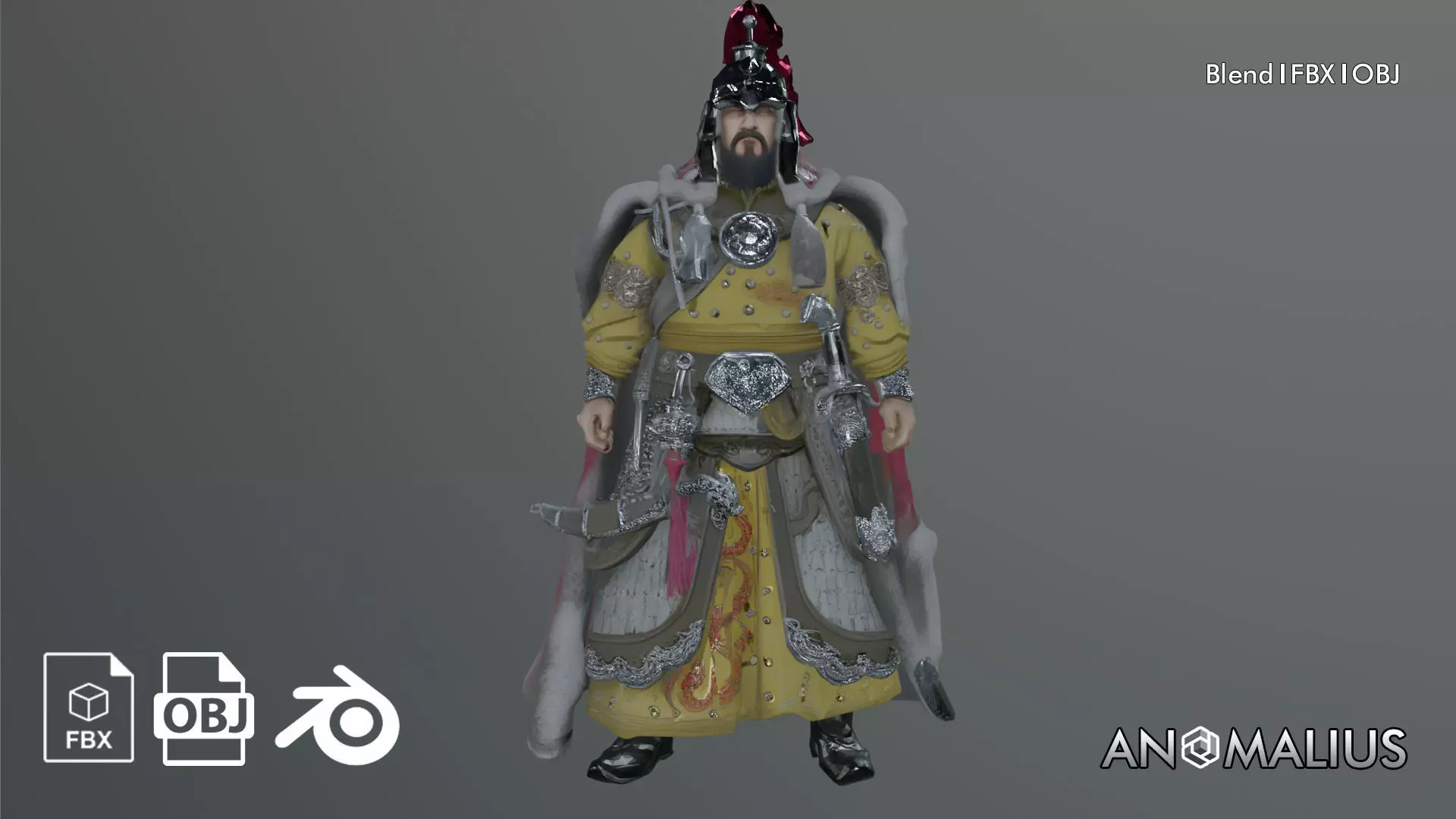 Mongol warlord character inspired by Genghis Khan, featuring layered armor, ornate clothing, and traditional steppe elements. The model includes rich costume details such as fur trims, metal ornaments, and weapon accessories, making it suitable for historical, Asian, or strategy-style environments. Ideal as a character or display asset for games and cinematic scenes