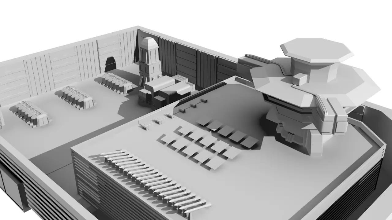 This is a 3D Model Sci Fi Futuristic Military BaseThis Model is made of Blender.This model contains every militar building, a Watch tower, two truck,some goods, missiles, Rooms etc. After Purchsing this , You can add some more elements, If you want.