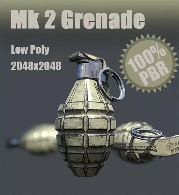 Mk 2 GrenadePBR TextureBaseColor, Normal, Roughness, Metalic, Ambien Oclussion