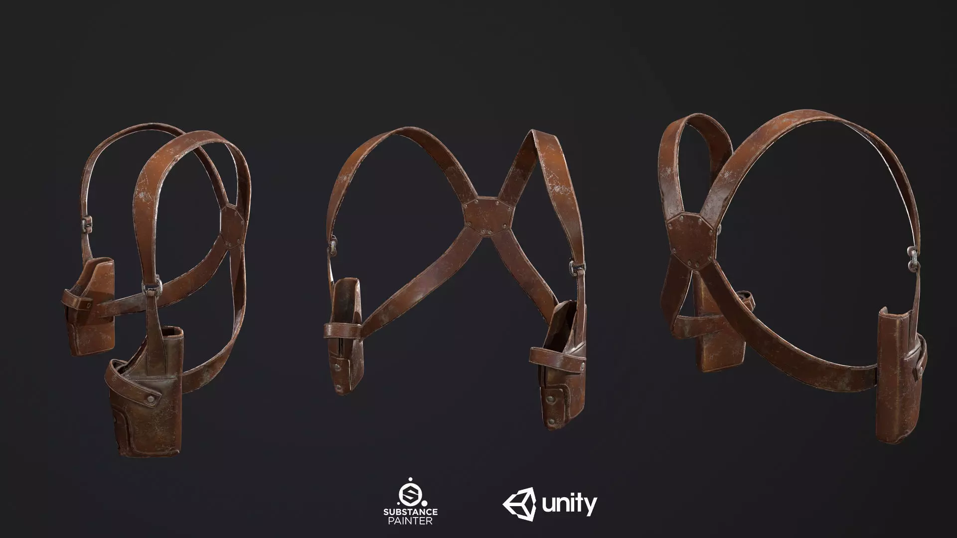 FREE 3D Model Leather Shoulder Holster textured in Substance Painter 2020 and rendered with Marmoset Toolbag 3.