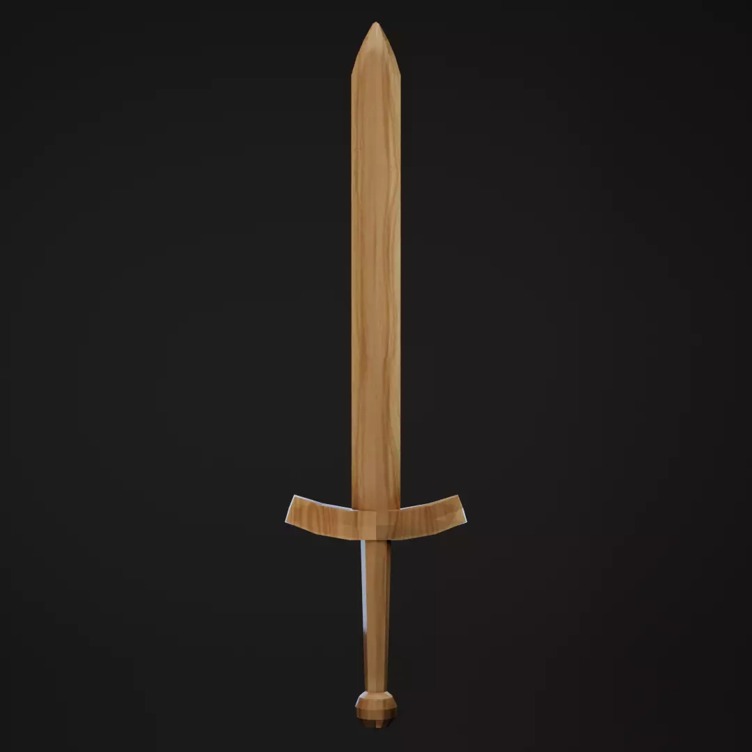 Low poly wooden sword created in Blender 5.0.