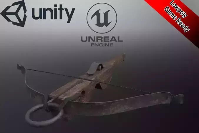 Lowpoly animated medieval crossbow with bolt game-ready Free low-poly 3D model