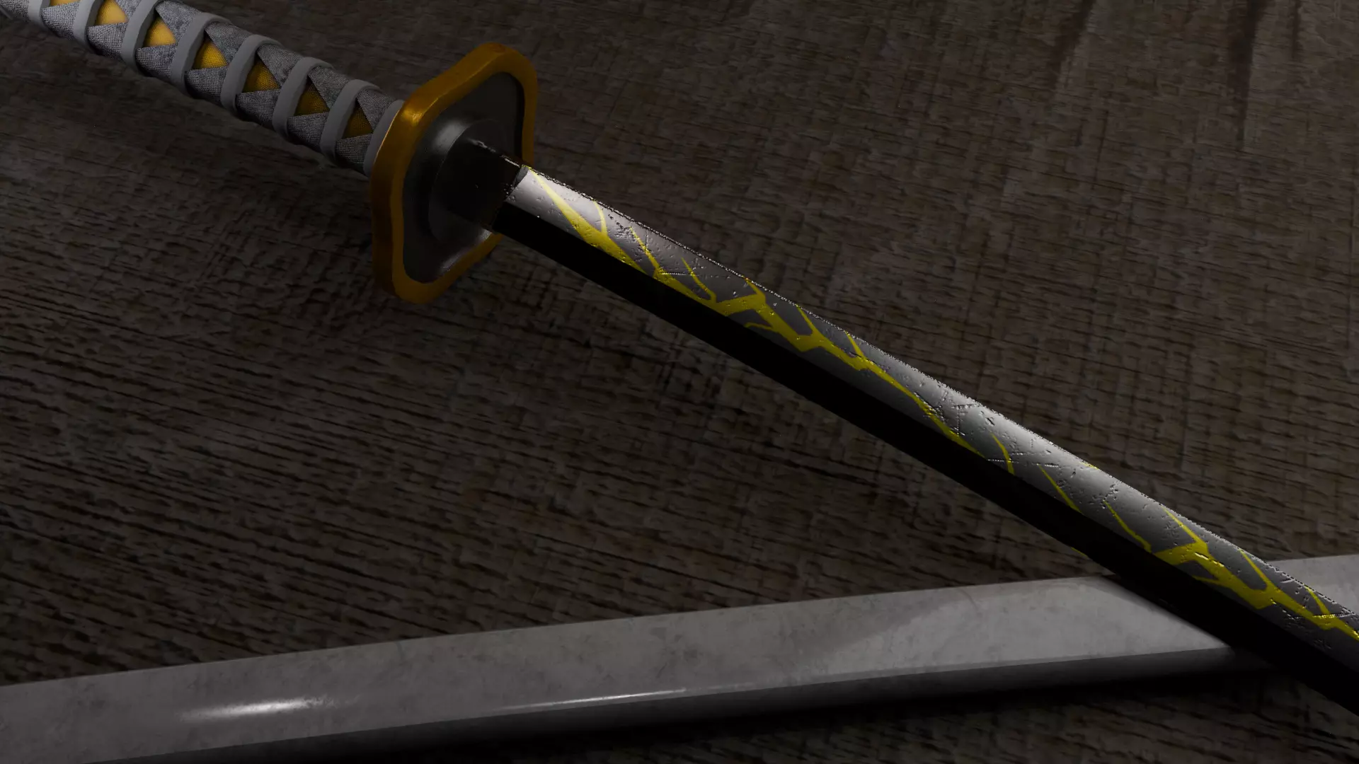 Zenitsu's sword from Demon Slayer with realistic texture. I modeled and textured the piece, giving it a realistic finish to showcase the final result. It's an asset designed for low-poly game development and optimized for engines like Unity or Unreal Engine. I hope you like it, and if you purchase the product, your opinion, rating, and feedback are appreciated.