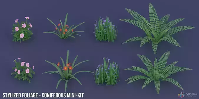 Mini Stylized Foliage Kit Free low-poly 3D model