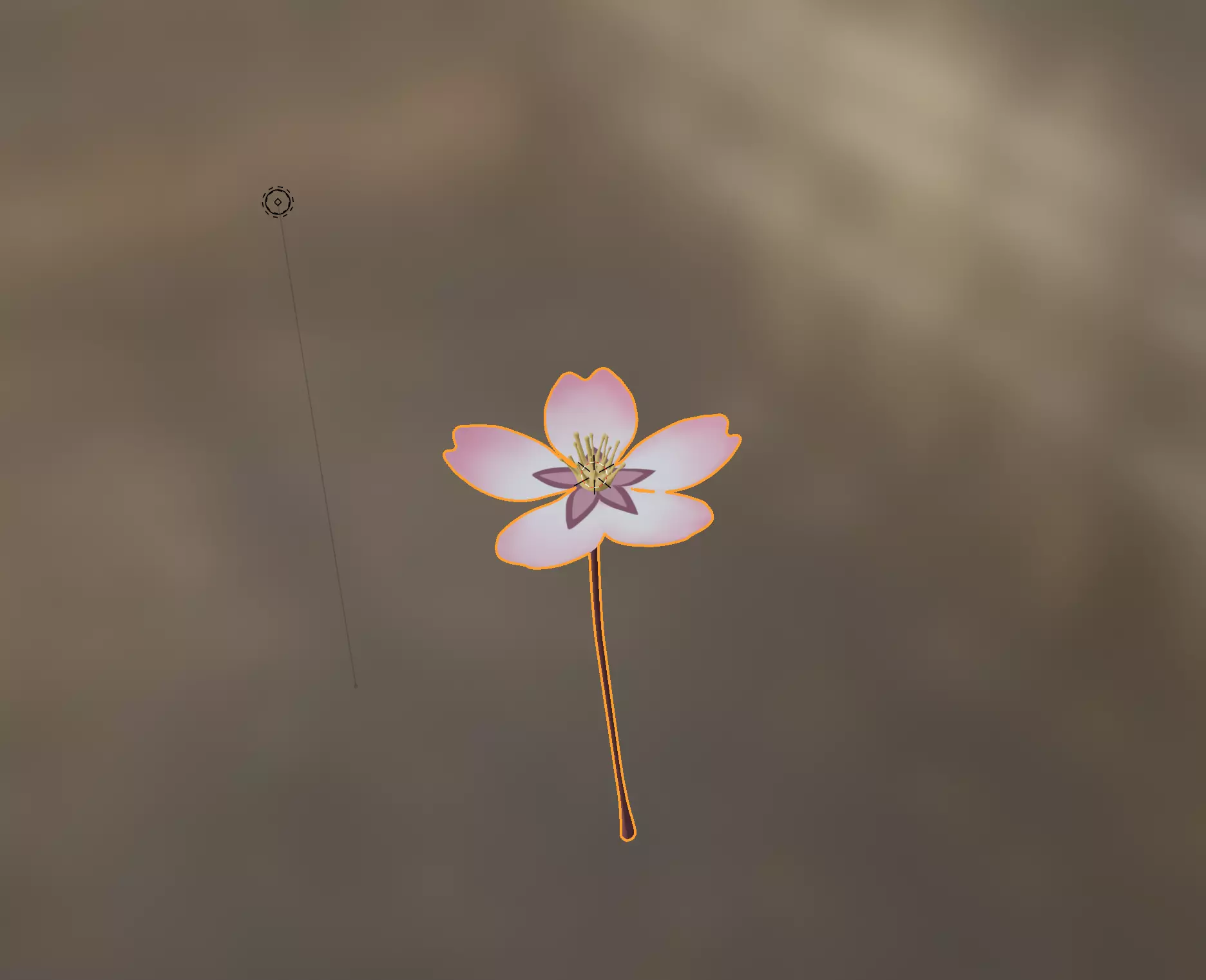 This is a high-quality 3D model of a cherry blossom designed for realistic rendering and animation. The model features a beautifully detailed flower with soft, translucent petals, a well-defined stamen, and a thin, elegant stem. The low-poly yet highly detailed geometry ensures optimal performance for real-time applications such as games, VR/AR experiences, and animations.