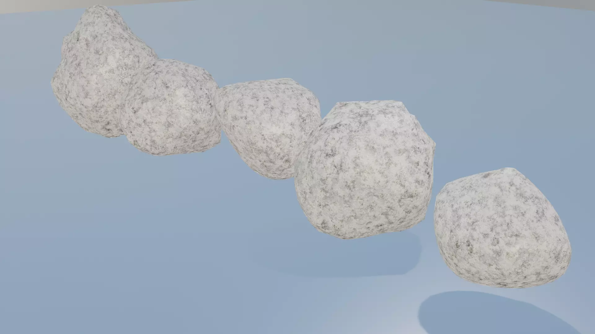 Five random shapes of stone & rock in blend files, can use eevee & cycles render.All models are made in Blender and also use blender materials. It support eevee render and if want more realistic result can use cycles render