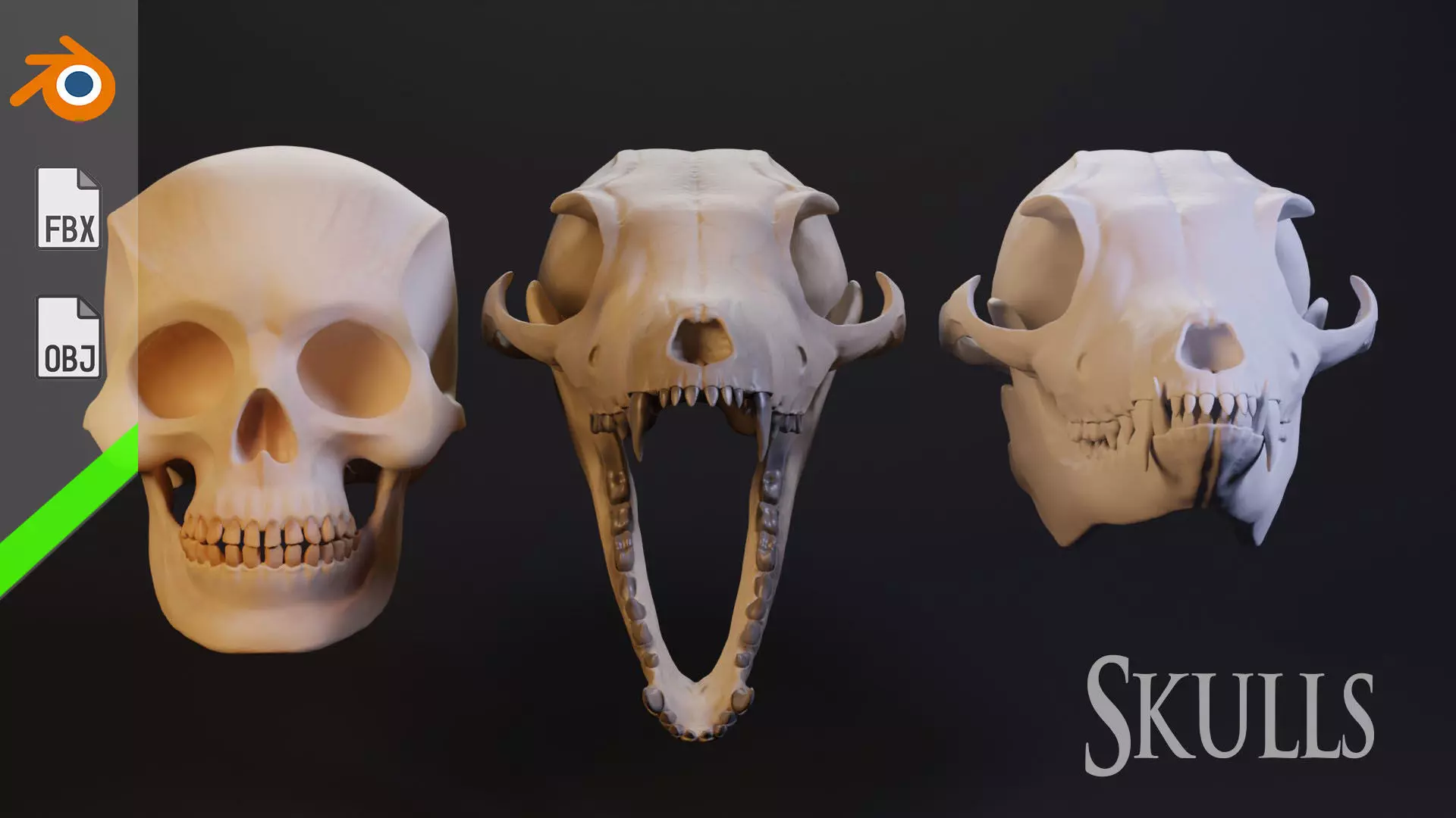 • Череп лисы: 1)высокополигональный без текстур. 2)среднеполигональный с несколькими вариантами текстуры и картой нормалей.