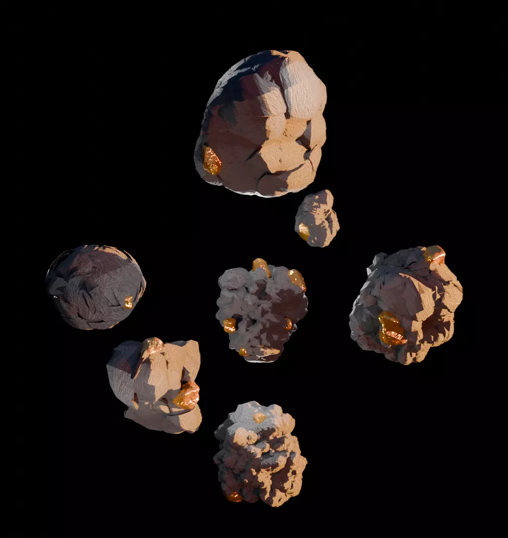 3D asteroids pack, can be used for any 3d project.blend, fbx, stl, obj, mtl, x3d.