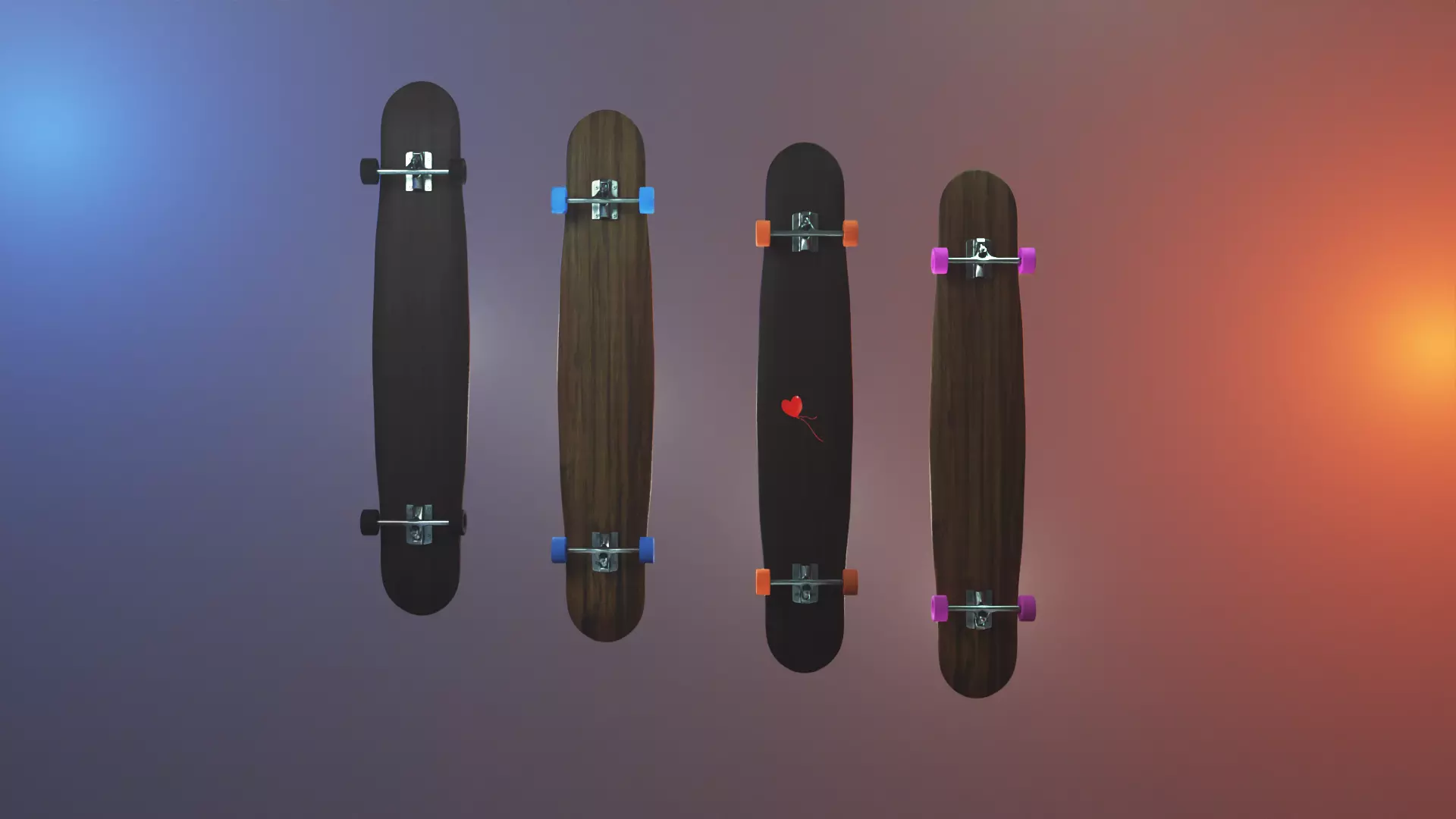 LONGBOARD_RIGGED - a blender file with the rigged board. The rig allows to move and rotate the board, rotate the trucks, tilt the board, rotate the wheels. You can rotate the board around the center pivot and around the front and back truck. However, there is a rig limitation concerning the rotation around one of the 3 rotation axis (you can see it in the youtube clip).