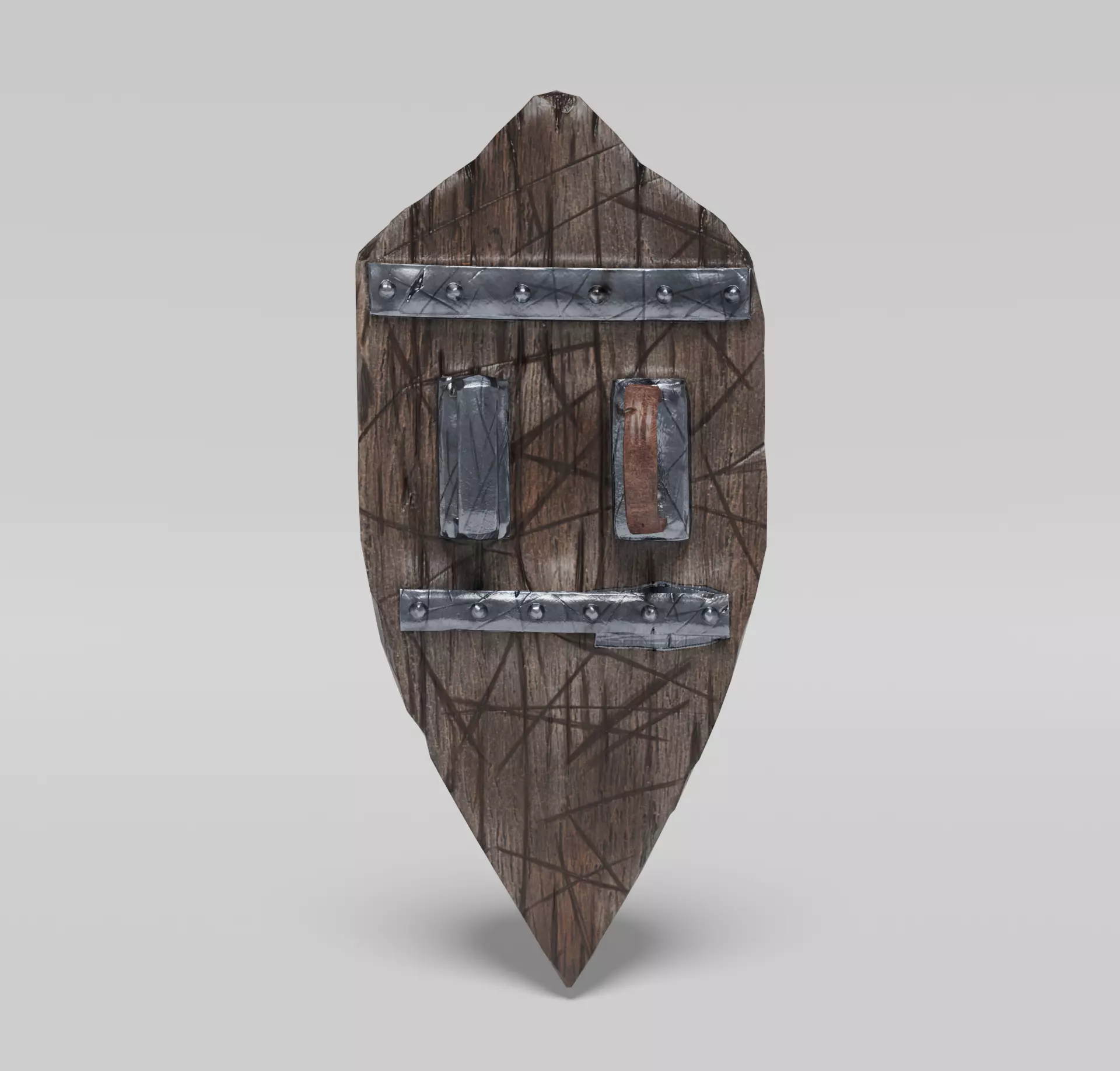 A medieval style shield with a pointed bottom and a rounded top Free low-poly 3D model
