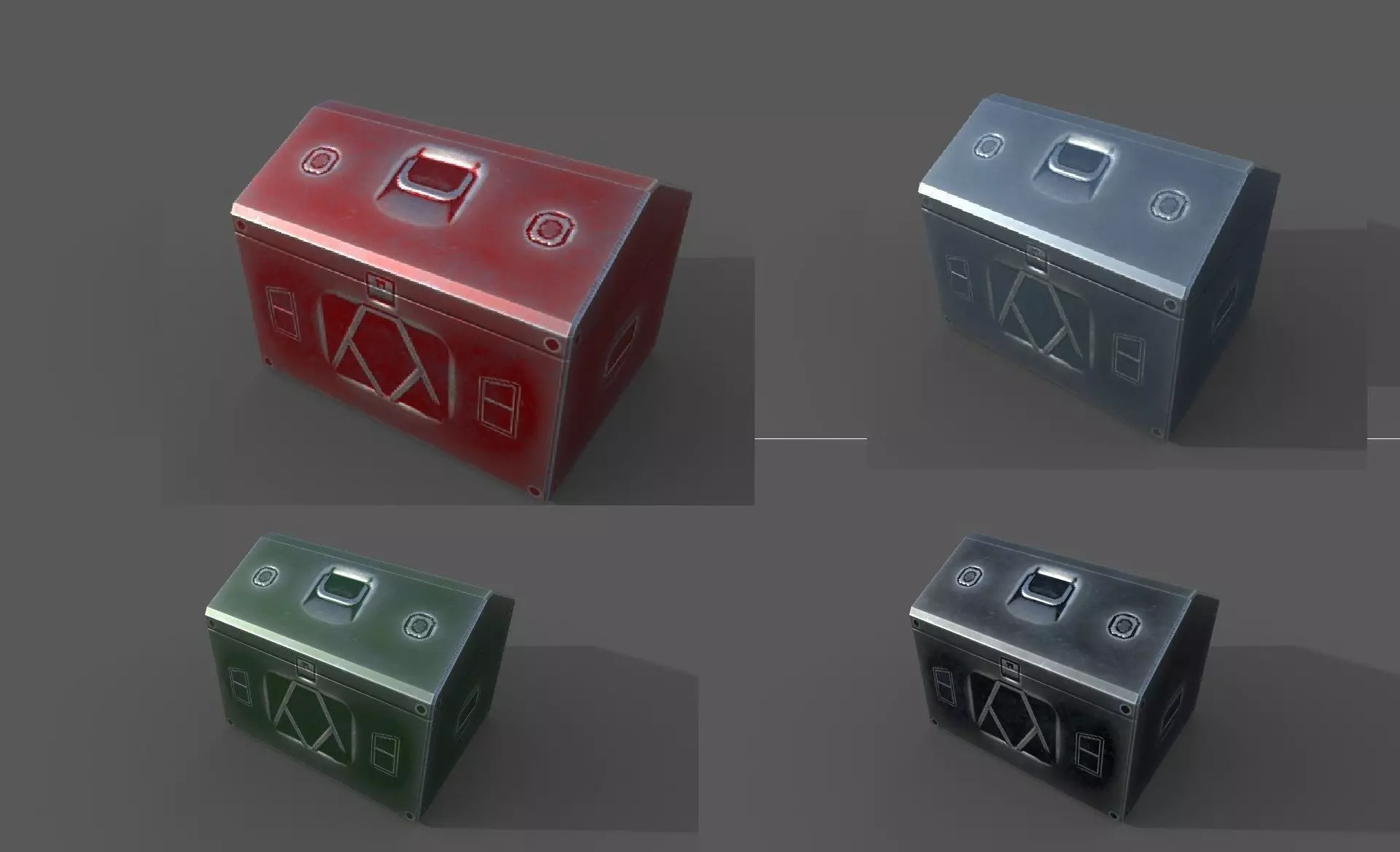 this a lowploy model of a metal box made in blender and textured in substance painter textures size 1ktris 90comes in 4 different color masks (blue,red,green,black)