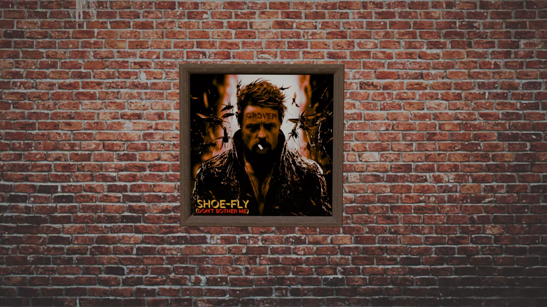 This is an authentic picture of Dean Groven's album artwork for his song Shoe-Fly (Don't Bother Me).Song and video can be found on youtube - @thetwiztedsnowman