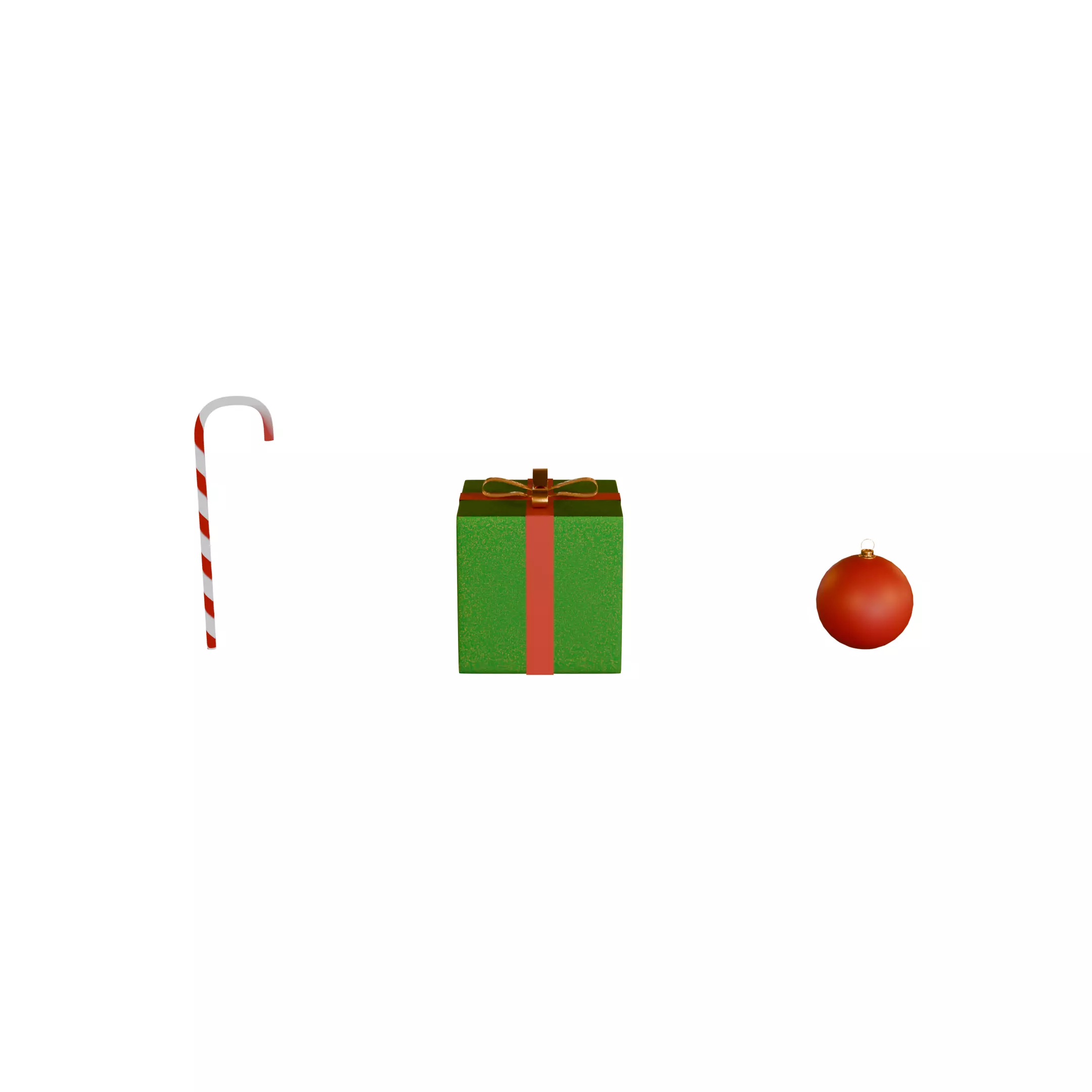 Christmas Ornament Ball: Simple yet elegant. Candy Cane: A timeless holiday treat. Gift Box with Bow: Perfect for enhancing any festive environment.