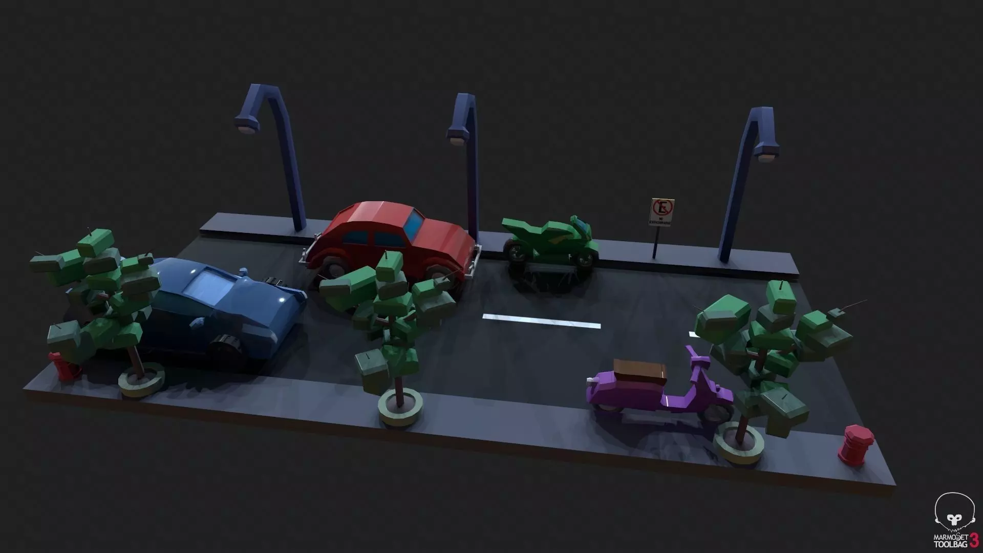 A pack of various game assets like 2 different cars and 2 different bikes and a street with different assets ready for a game engine I think ideal for a game jam it has in total with all the assets 8437 verts 8277 polys and 16178 tris and includes 5 textures named and are 1024 x 1024 and it is only the diffuse texture if you need game assets I am available for commission works.