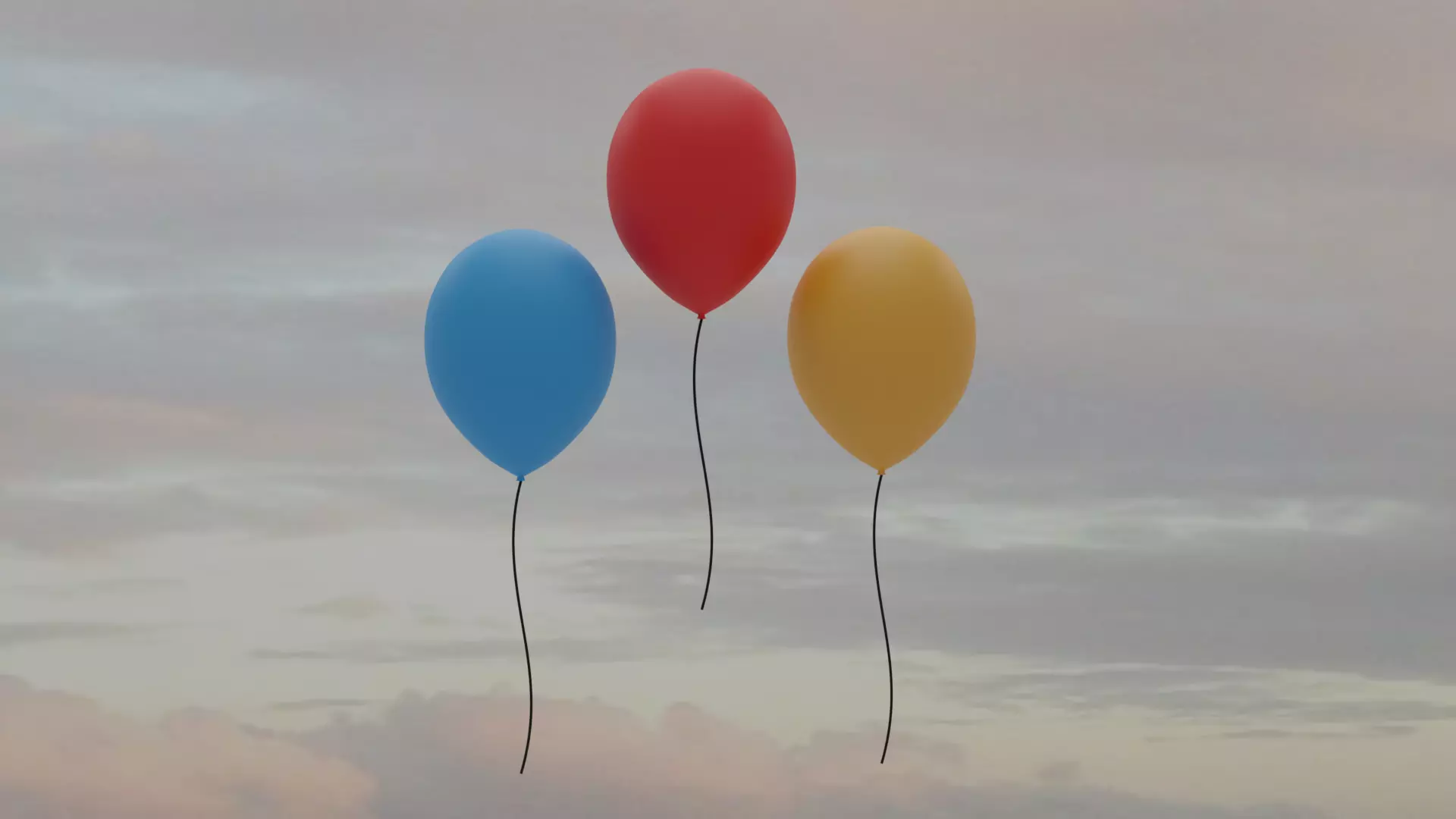 This is a model of red, blue and yellow balloons.Dimension WireH : 4.01m Balloon X : 2.61Y : 2.6Z : 3.44Polygons: 3956 x 3 + 11868Vertices : 3970 x 3 = 11910Files size(Biggest) .obj ( 1.6MB )(Native) .blend ( 1.27 MB )(Smallest) .mtl ( 799 bytes )Files(Native) .blend.obj.fbx.glb.usdc.mtl.stl.plyRender : CyclesApp/Ver : Blender 2.93