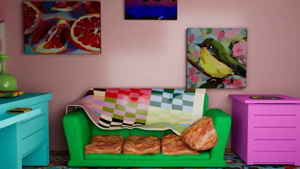 The model has material settings that define how surfaces look (color, shine, transparency, etc.).
