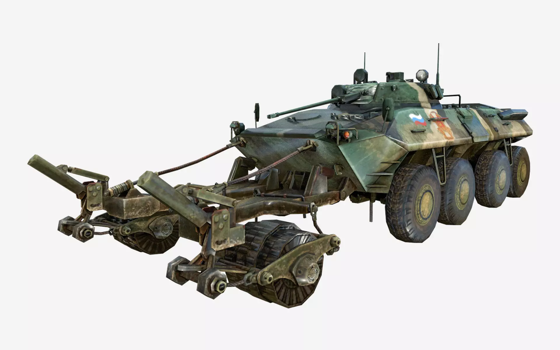BTR-90 Trall Russian APC. This is low poly model with high detailed texutres. Well suitable for any game engine.