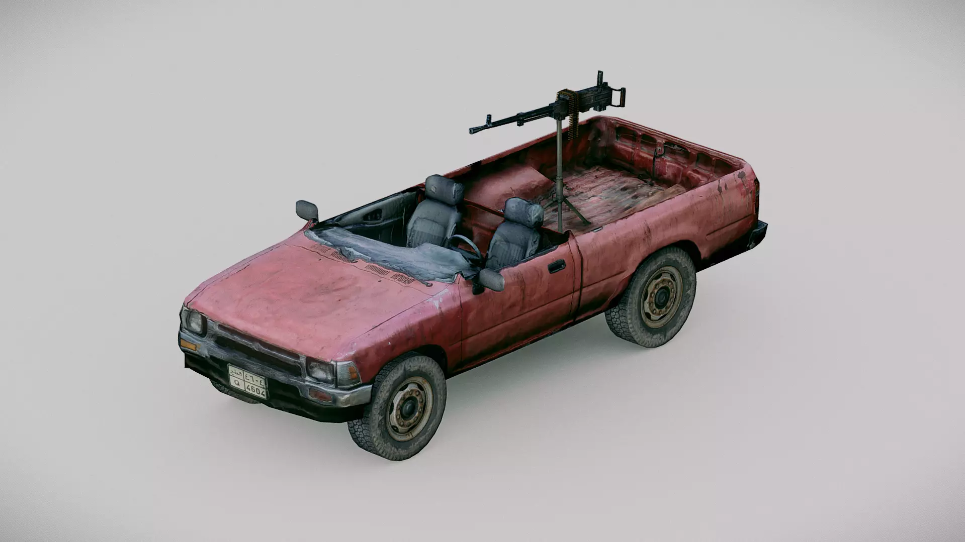 It’s pretty interesting workflow that allows to quickly make fairly photorealistic models of objects that wouldn’t be easy to find and scan in real life.Like this technical. Improvised military vehicle created by cutting off the roof of pickup truck and mounting in a machine gun in a cargo bed. Cars like this saw use in the Chadian–Libyan conflict that thanks to the wide use of converted Hiluxes and Land Cruisers was called “Toyota War’‘.