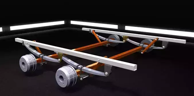 I did some FE stress analysis to check the axle’s load capacity. The square Tube (50x50x3) resists the 1850 kg load and a maximum braking torque per wheel of 575 N.m, with a safety factor of 2. The Spring Support was also analyzed. The material used was ASTM A36, Yield Strength 250MPa.