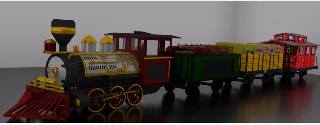 The model has material settings that define how surfaces look (color, shine, transparency, etc.).