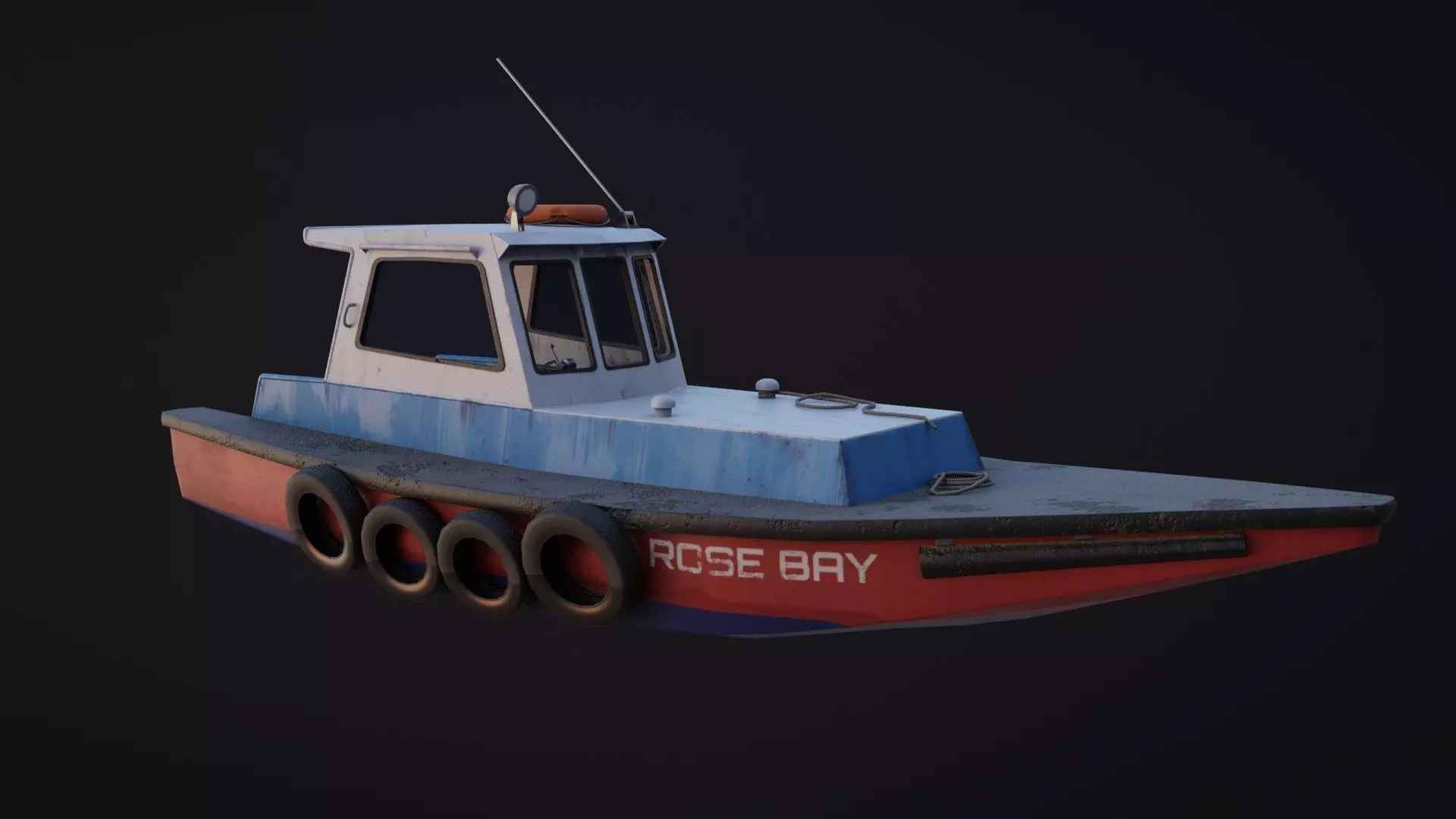 Old Harbour Boat game-ready asset with PBR materials.