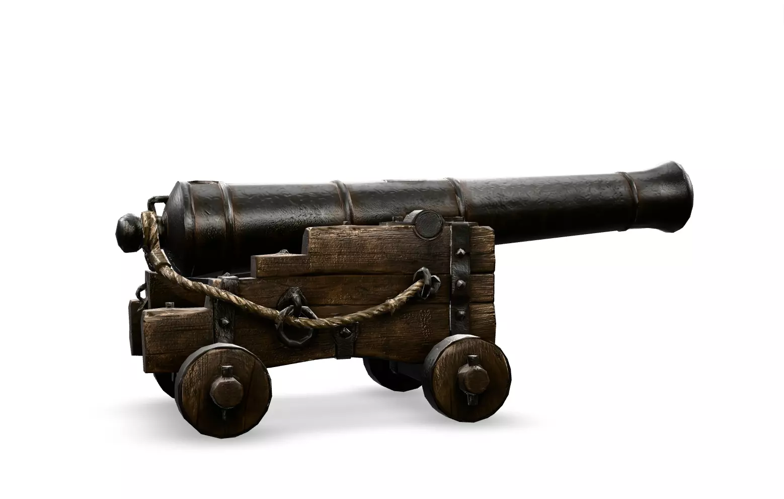A high-quality, game-ready 3D model of a rugged, historical naval cannon. Perfectly suited for gritty pirate adventures, Age of Sail ship decks, or coastal fortress environments.