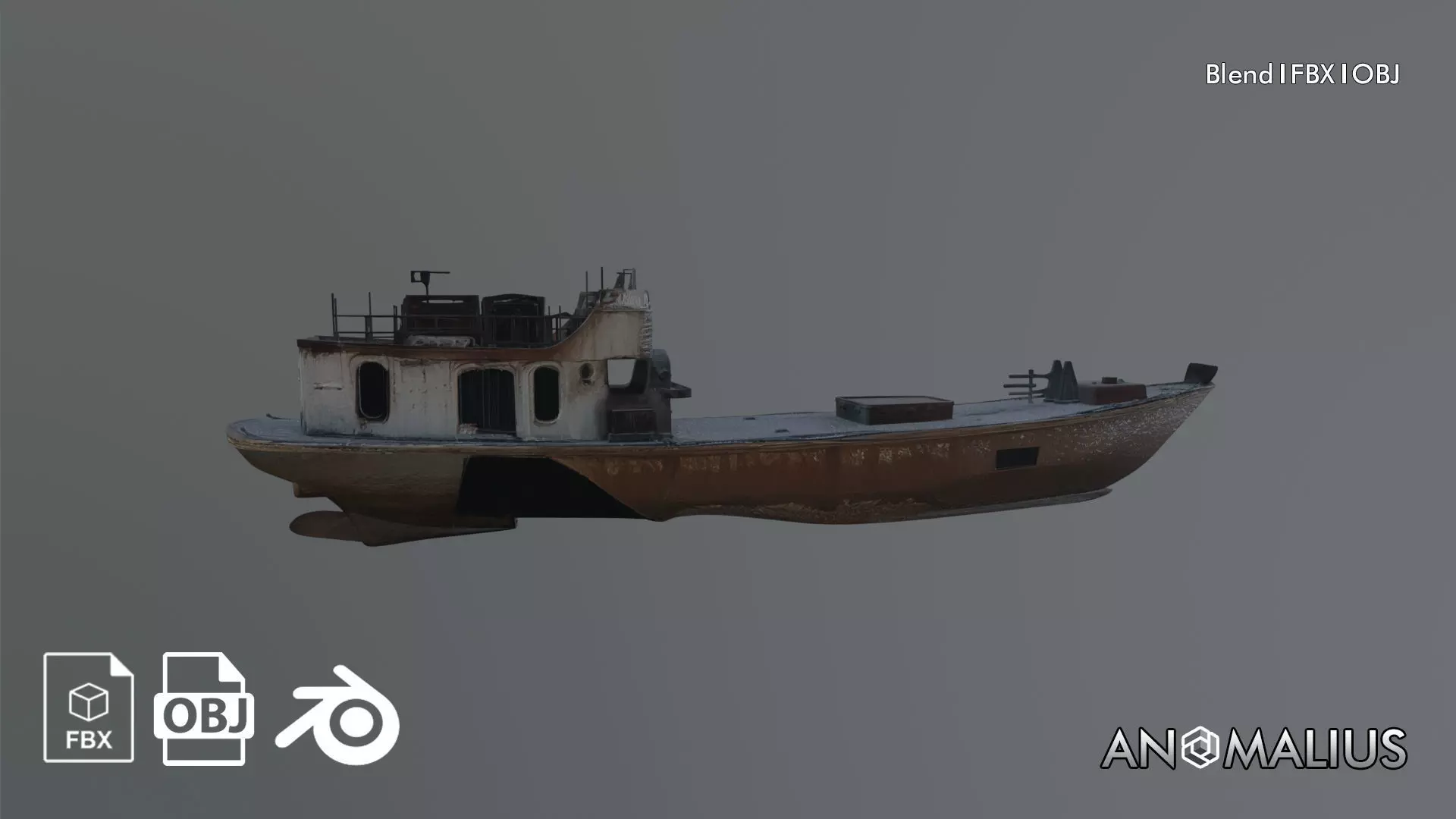 A heavily weathered maritime vessel designed for gritty, post-civilization or industrial environments. This asset features deep rust textures, a detailed cabin structure, and a low-profile hull suited for coastal or dry-dock scenes