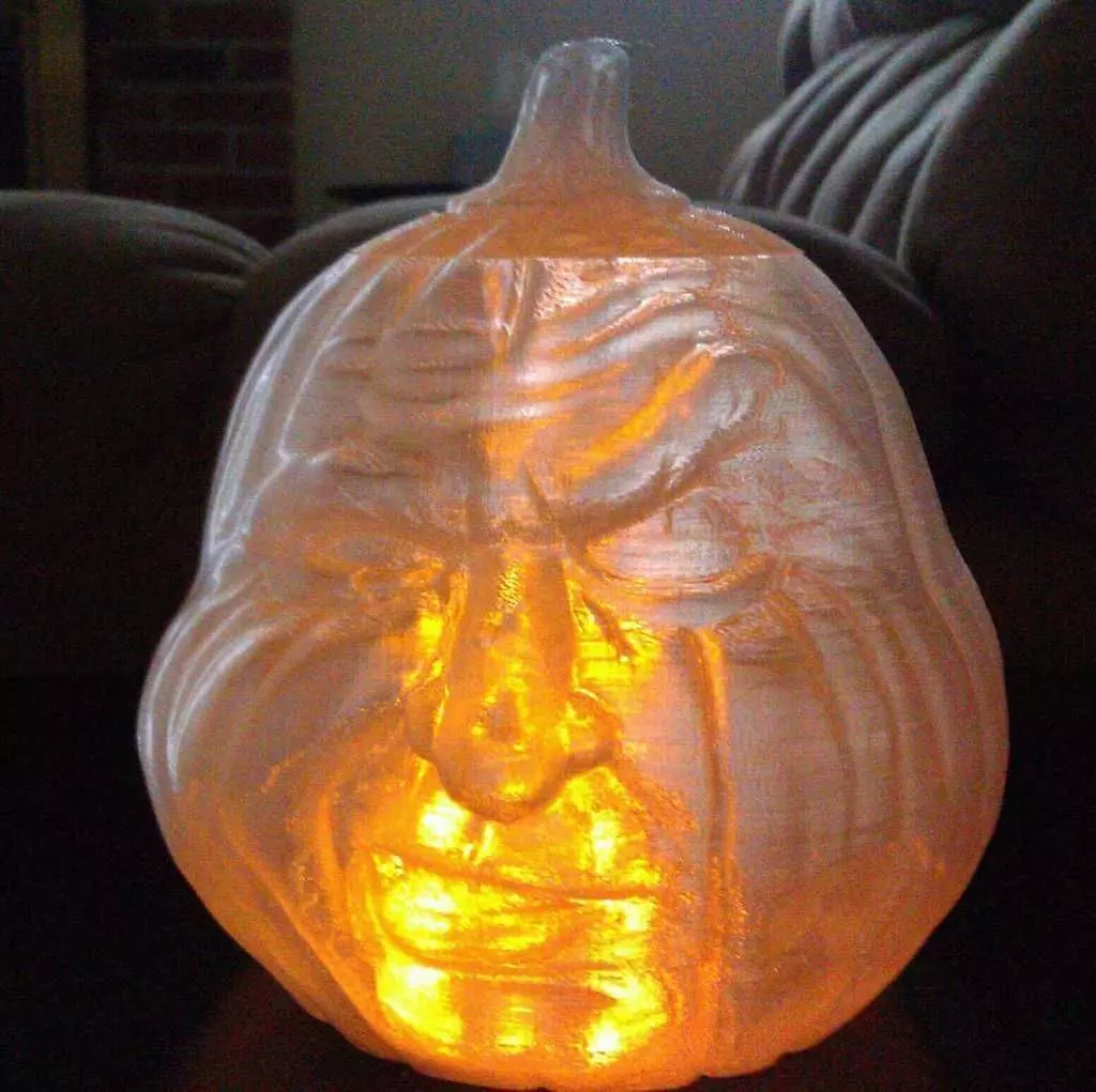 I printed Steve Campbell's excellent Grumpy Pumpkin model.