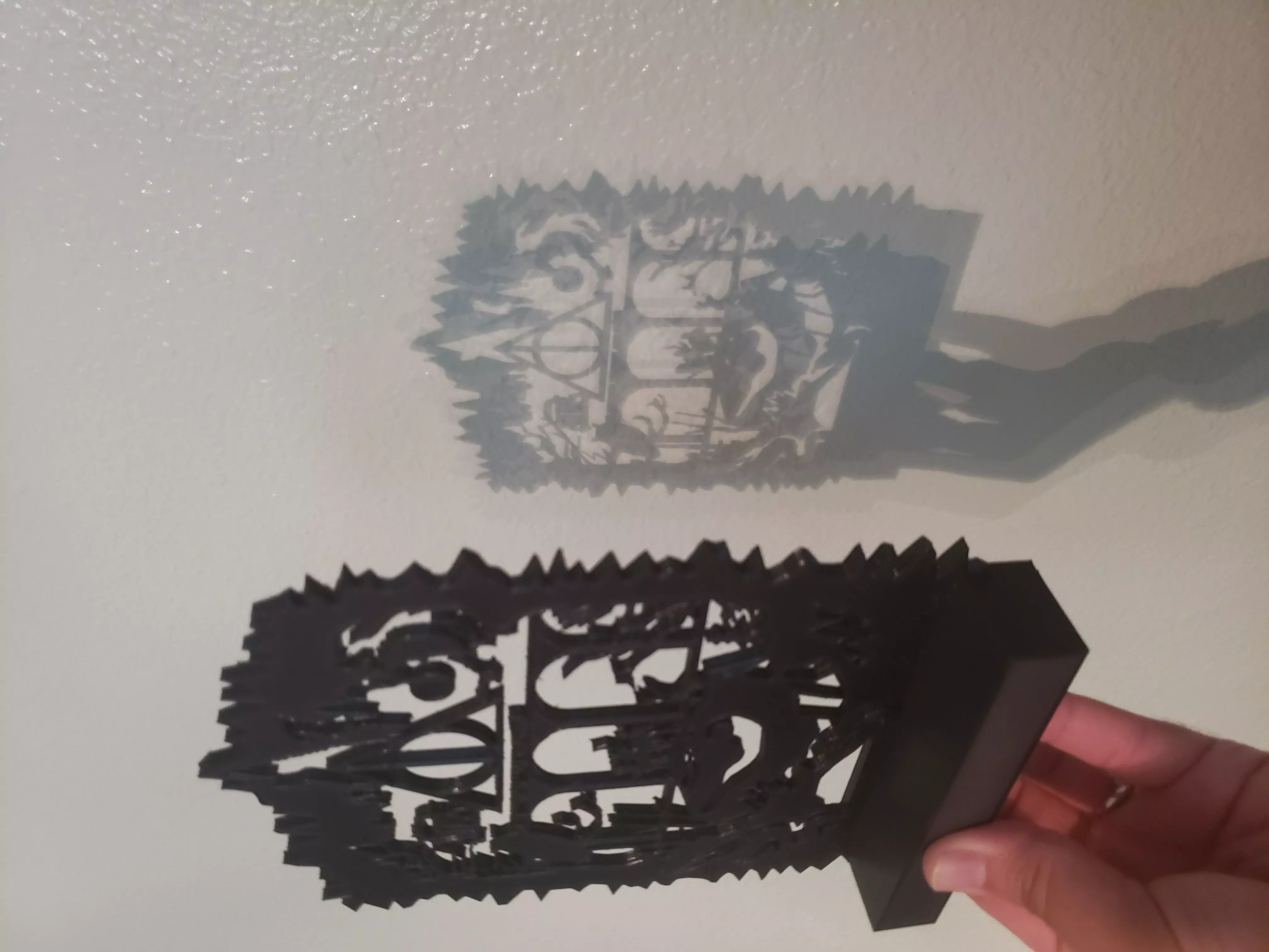 I modeled a poster for a Harry Potter themed decal into a 3d object that can be used to cast a shadow on a wall, or just as a table decoration if you like. I also included a simple stake that fits right into the base in case you want to cast it to the outside of your house from the yard. I am making it free to give back to the community for all the wonderful models I've found and wish for it to remain free for everyone and to not be used for sale.