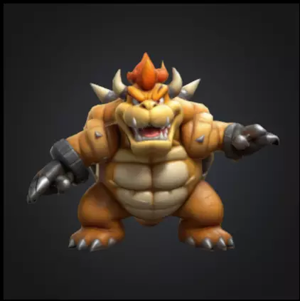 Bowser de mario bros.Muscular body. Menacing expression. Chibi art style. Well-proportioned. Clearly defined features. Highly detailed. Highly stylized.Walls and features are at least 2mm thick. Bold, recessed features with a depth of at least 2mm. Sharp, clean lines. Embossed features to rise at least 2mm above the surface. DND.