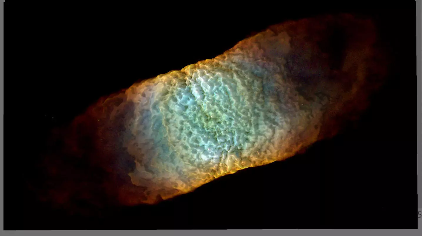 3D image obtained as a result of soft analysis of the 2D images of the new Hubble Space Telescope. The technique based on color analysis highlights the light of stars and ionized gases from the darkness of space, as gravity curves space, thus creating a spatially interpretable high-resolution 3-dimensional work.