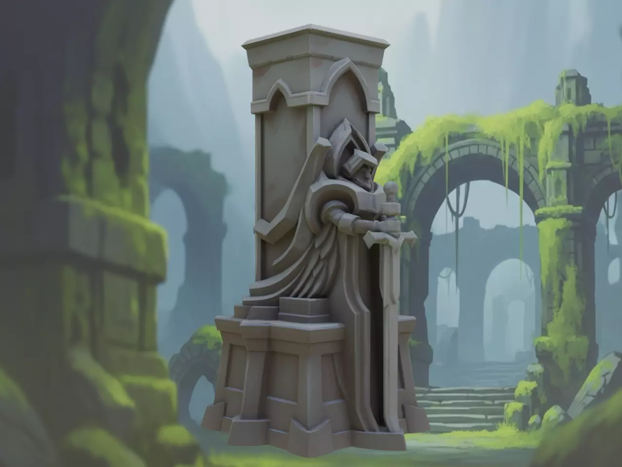 Please note: This download includes the Stylized Fantasy Guardian Stone Statue model ONLY.
