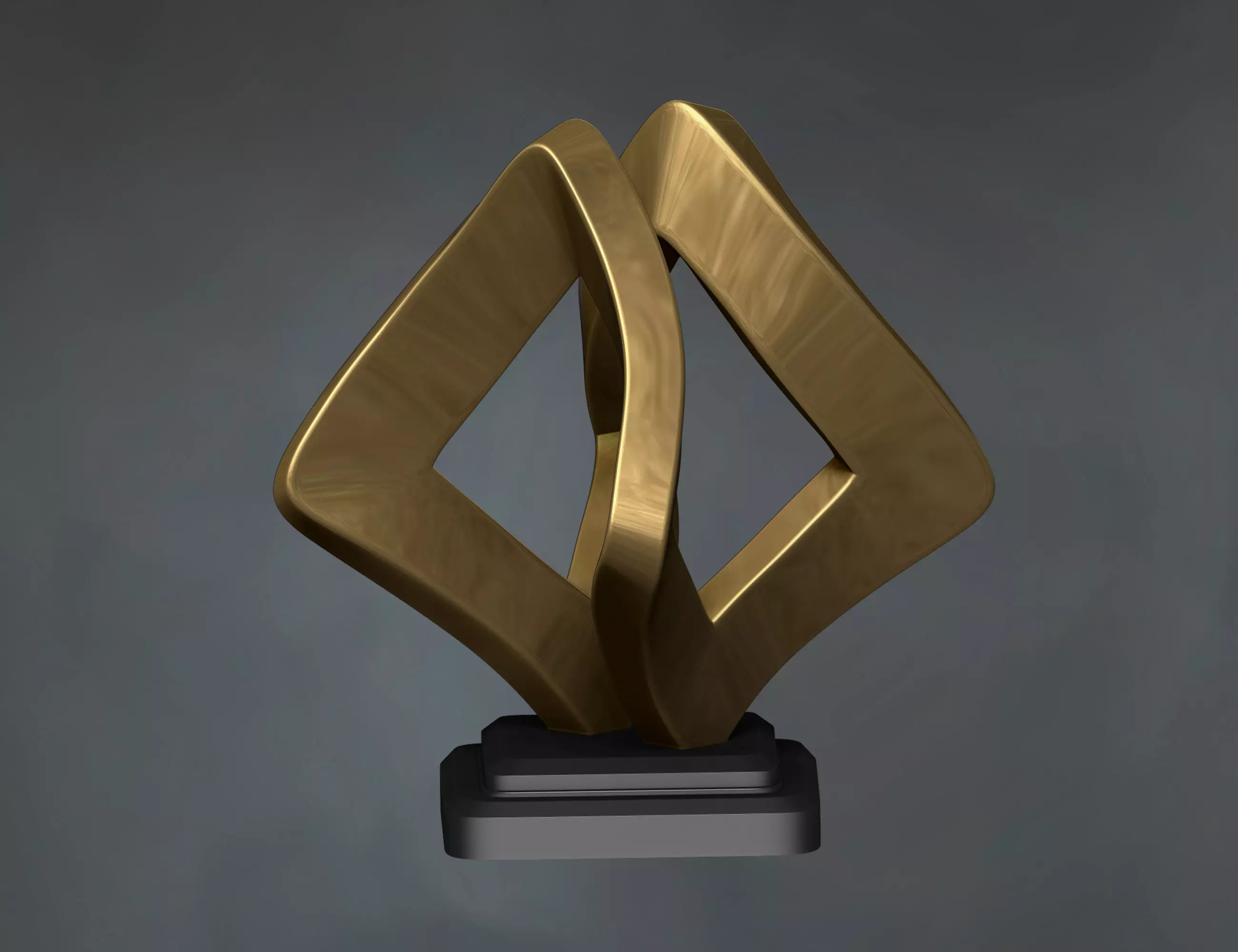 This 3D model of a tabletop sculpture is an intricate and visually striking piece, designed specifically for 3D printing. The sculpture combines modern artistic elements with a classic touch, making it a unique and elegant addition to any interior. The base of the sculpture features a smooth, rounded platform, providing stability and balance to the overall structure. The central design element consists of a fluid, abstract form that evokes the movement and energy of nature, with intertwining organic curves and twists that create an illusion of motion frozen in time.