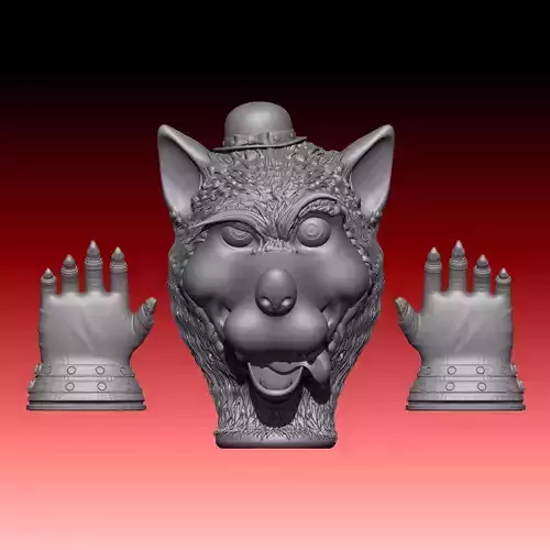 Archivos cabeza y manos de títere de guante de el Lobo Feroz para impresión 3D. Big Bad Wolf glove puppet head and hands files for 3D printing.