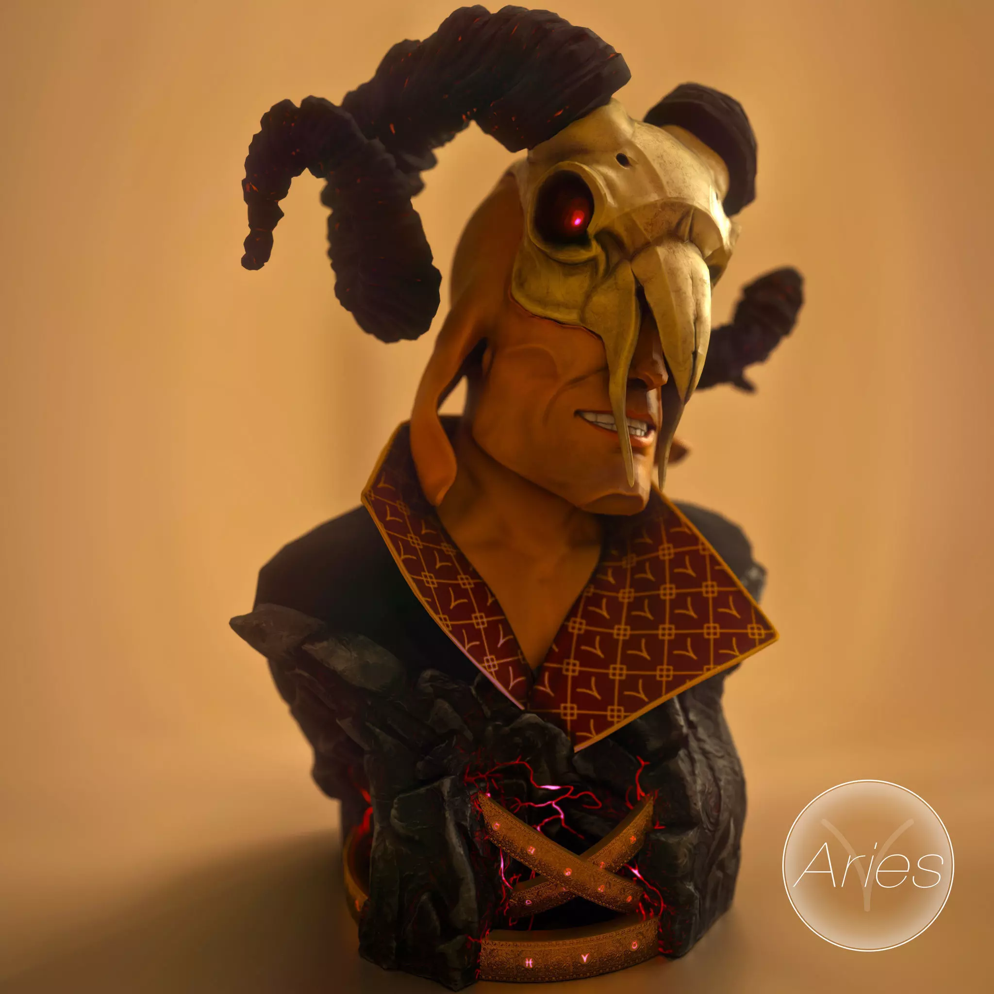 This is the first sculpture, in a series of sculptures of the Zodiac Signs. Aries has the element of fire.