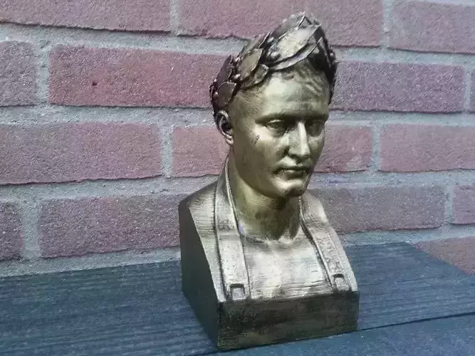 In the files you can find the original solid STL (NapoleonBustSolid.stl) that I have scaled up and touched up a bit. I cut it in two and made it hollow, these are the two other files.