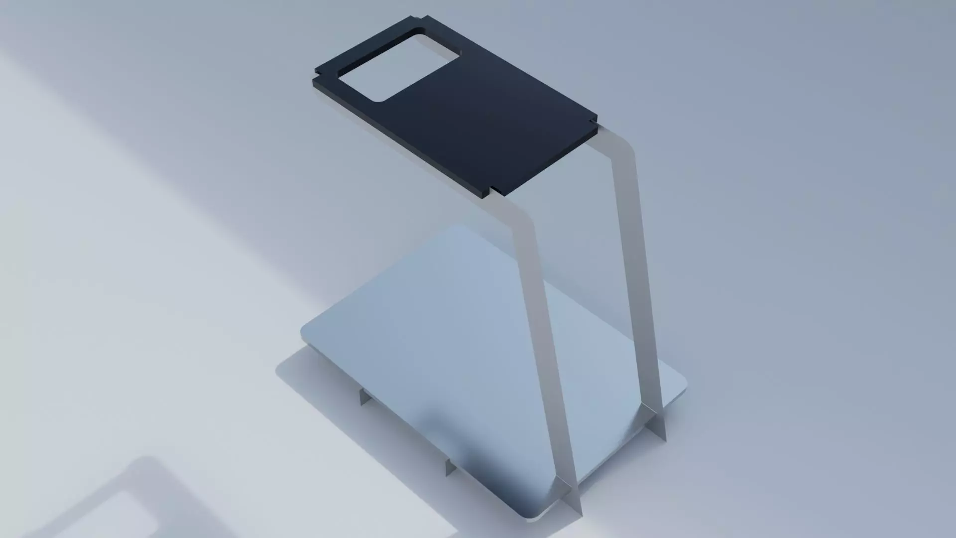 Design Features:Top platform: Holds the smartphone or camera securely.Bottom platform: Serves as the scanning area for documents or objects.Metal frame: Ensures stability and maintains a fixed height for consistent imaging.Curved edges on the top platform: Designed to prevent the smartphone from slipping.