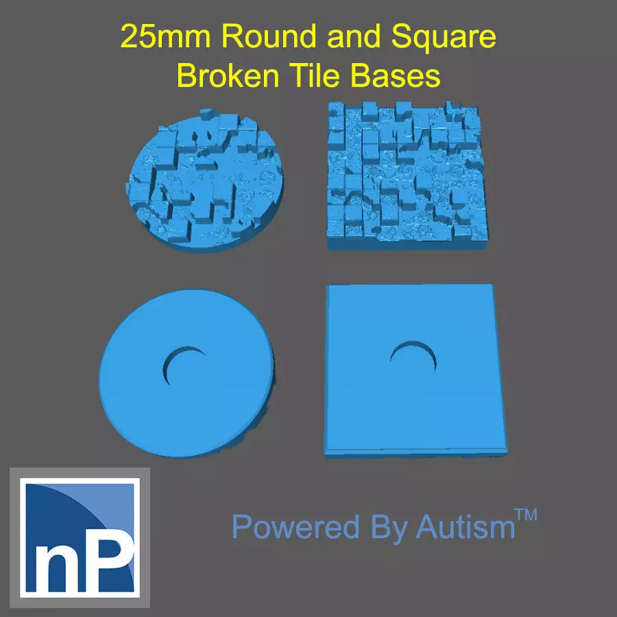 Need a quick Broken Tile base for your Warhammer 40k, Age of Sigmar, D&D, or any other miniature? Here you go! If you might be looking for enough bases for a whole army be sure to check them out here