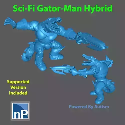 Is it a man with alligator DNA or an alligator with human DNA? Who know, but either way you better not be standing close when he’s hungry. Add this 55mm tall power armored Gator-Man hybrid to your sci-fi or super-hero role-playing games, miniature wargames, or just print up for a cool piece for your collection!
