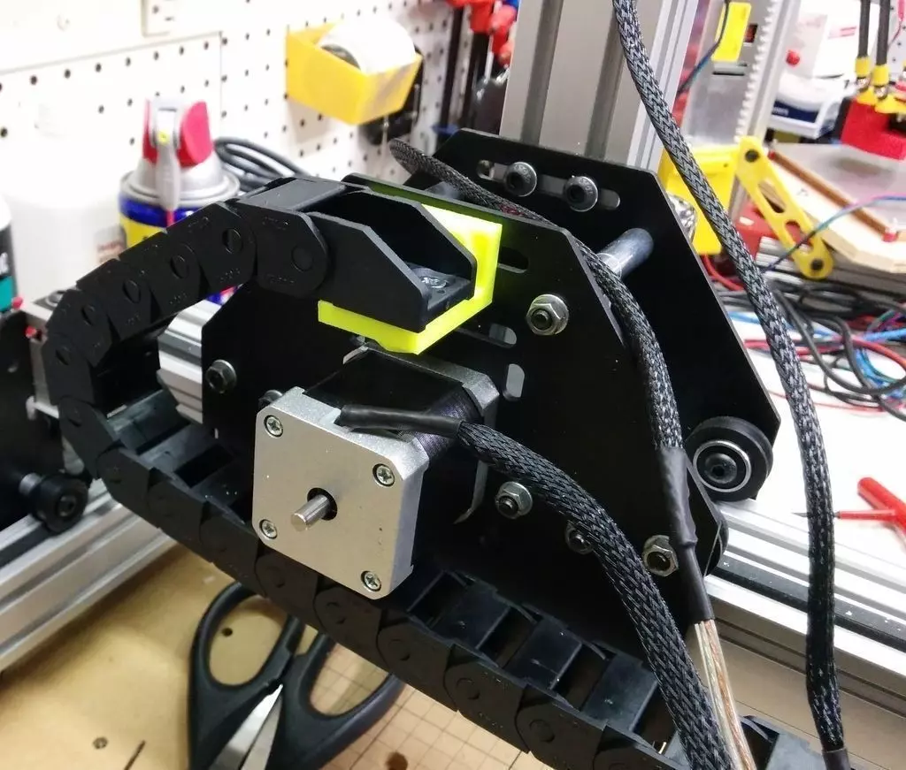 This is an assortment of cable chain mounts- I'm trying different configurations to find one that I like. The various part revisions are different mounting options for each cable chain end.