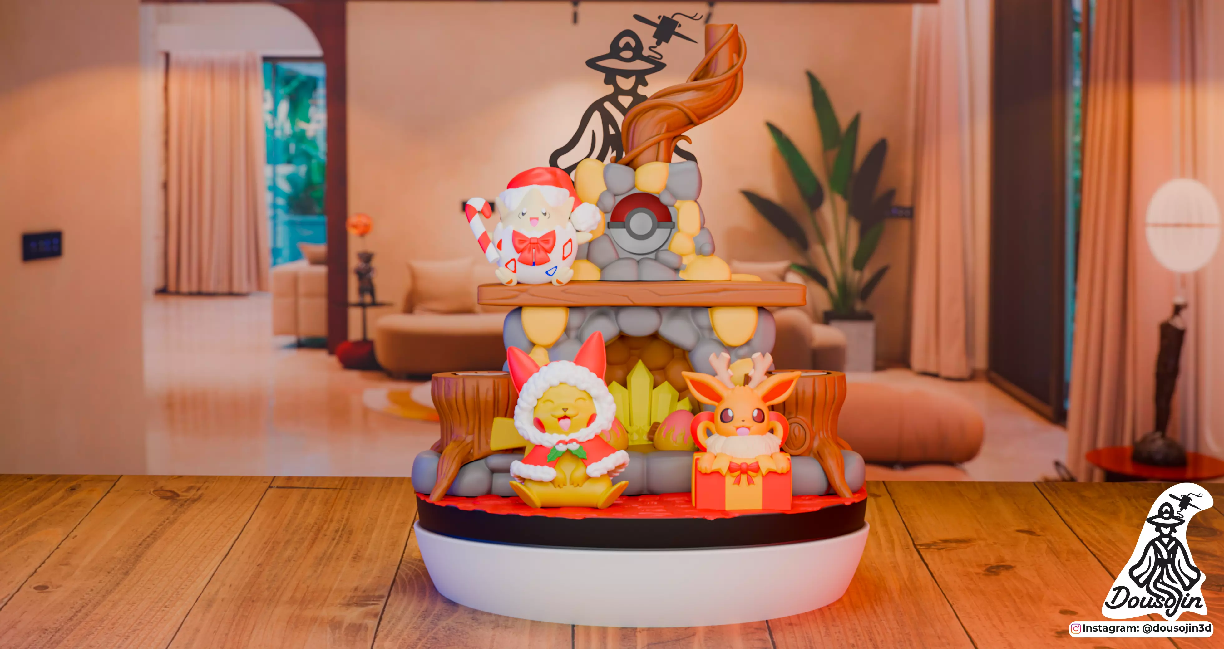 During the winter season, Pikachu, Eevee, and Togepi gather around a warm magical fireplace to celebrate the holidays. With gifts, light, and friendship, this diorama captures the essence of a moment filled with love and magic, evoking the spirit of togetherness that is so characteristic of Christmas.