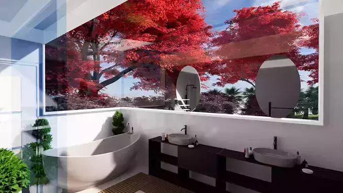 A three-corner window bathroom with a beautiful and elegant view and a white interior is a stunning and luxurious space. The bathroom is designed with three large windows that are strategically placed to showcase the breathtaking scenery outside. The windows are ideally positioned to provide an uninterrupted view of the surrounding landscape, which could be a forest, a beach, or a mountain range, depending on the location.