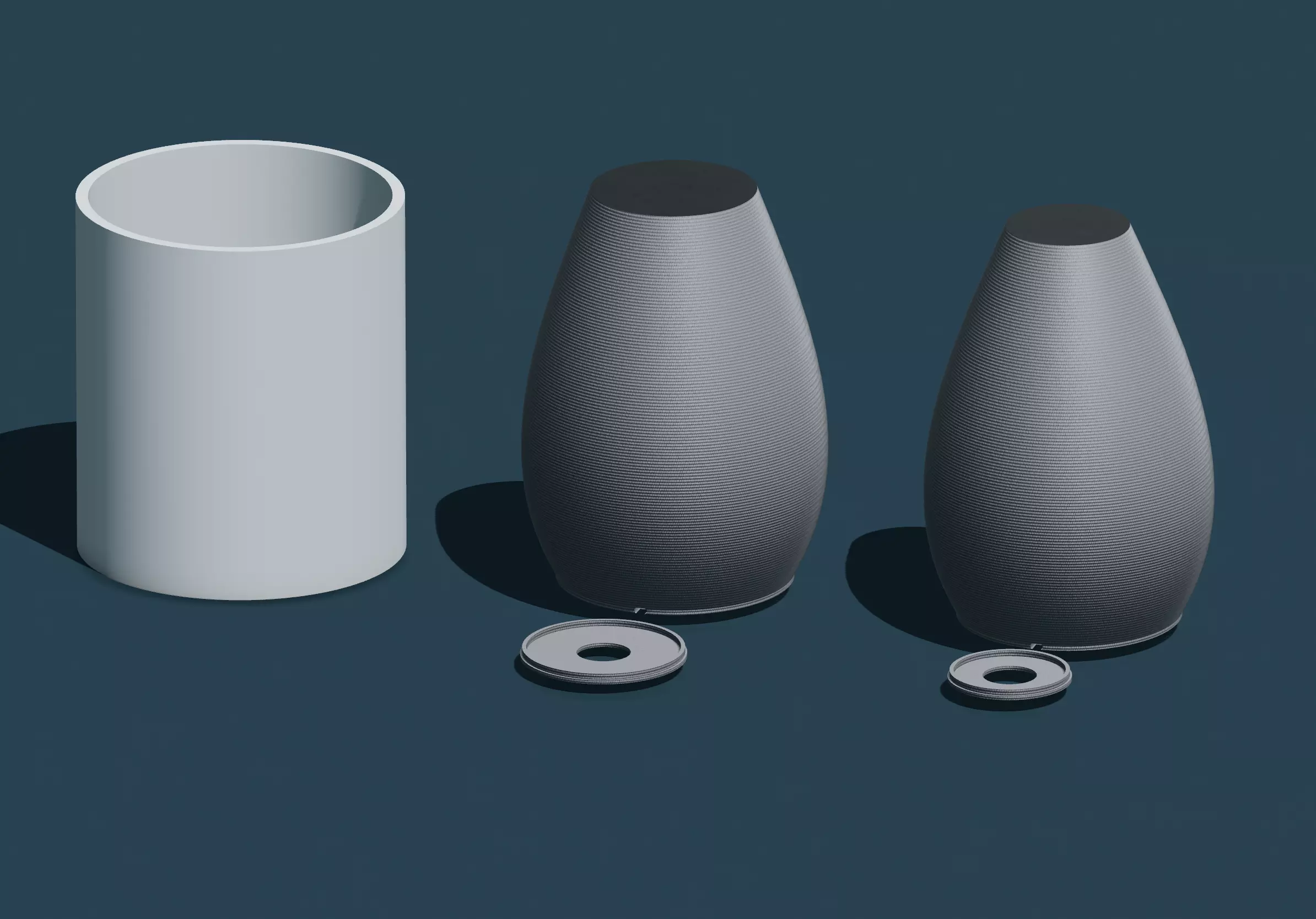 Layer Height = 0.2mm / Line Witdh = 0.4 - 1.2mm / Bottom Layers = 10 / more Layers if the Layer Height is lower than 0.2mm / Build Plate Adhesion Type = None / Spiralize Outer Contour = True / Optional:Fuzzy Skin = True