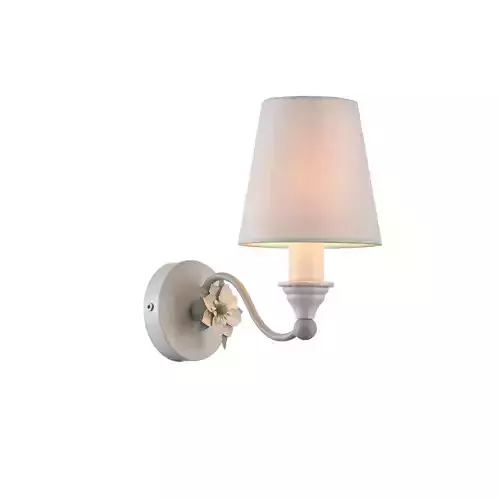 Sconce ARM790-WL-01-W Maytoni ClassicMetal frame. A variety of decorative elements: openwork ribbons, flowers, grey base. PVC lampshade covered with white cloth.
