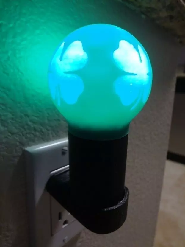 This night light mimics a lit globe with shamrock designs and stands at 5.25 inches tall with a width of 2.75 inches. This shamrock design is highlighted on a lit sphere and comes completed with a socket and plug. Other assembly components not included are a two-inch candelabra socket, a 15-Amp, 125-Volt Black 2-Wire Plug, standard lamp cord (cut to fit) and an LED candelabra bulb (see pics or [Assembly Instructions](http://www.outerbankslights.com/wp-content/uploads/2014/12/Night_Light_Shamrock_Globe_Assembly.pdf)). Recommended filament color(s) include green for the globe and black for the plug and socket. For the best and most detailed results, print all components at an extrusion speed of 20mm/s. This translates into a Fine or Detailed setting if streaming. The streamed files follow this order: Plug, Snow Globe 1, Snow Globe 2 and Socket.