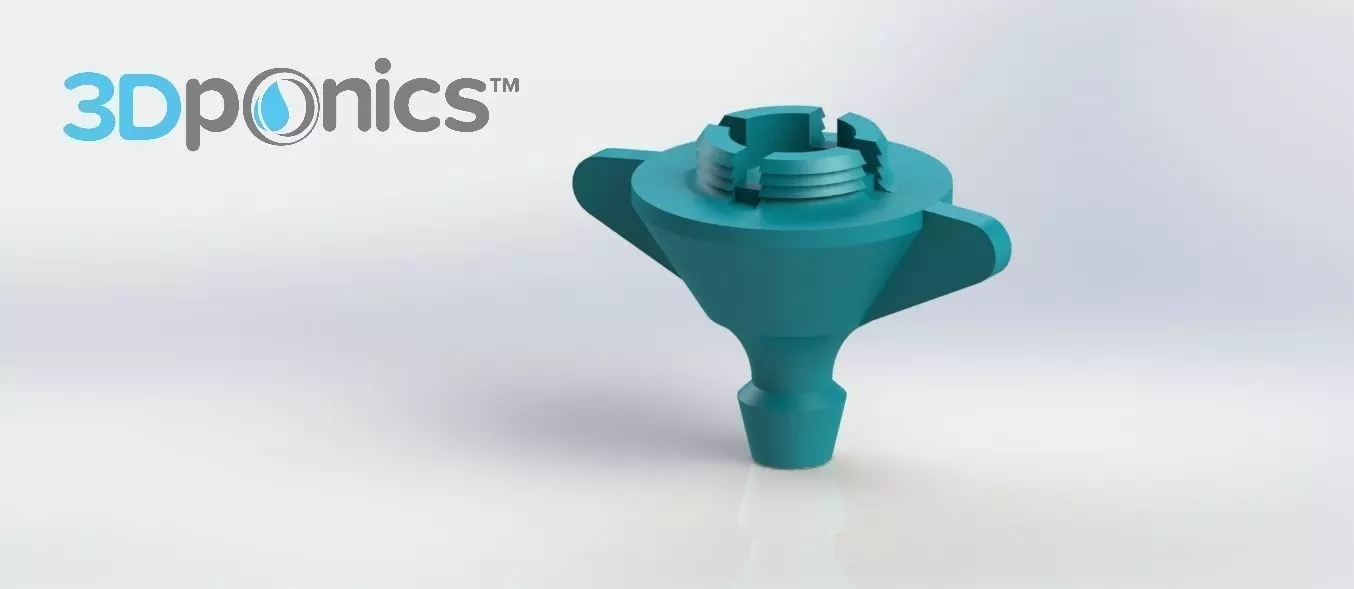 Version 3 of the Drip Emitter is an upgraded version of V2. It is used to drain excess water from pots that have a hole at the bottom. It fits snuggly inside the hole--all you have to do is snap it into place. For an extra secure seal, you can use silicone around the edges. You can then connect a long piece of tubing to the end of the Emitter and direct it into a large container or reservoir, which will collect the excess water. It has a thicker nozzle, which allows for a better fit with the flexible tubing. This version of the emitter has wings that give you a better grip. Know how to make this part better? Have ideas for new parts? Visit our website (https://www.3dponics.com) and join our Google+ community (https://plus.google.com/u/0/communities/111638904033818784260) to take 3Dponics to the next level!
