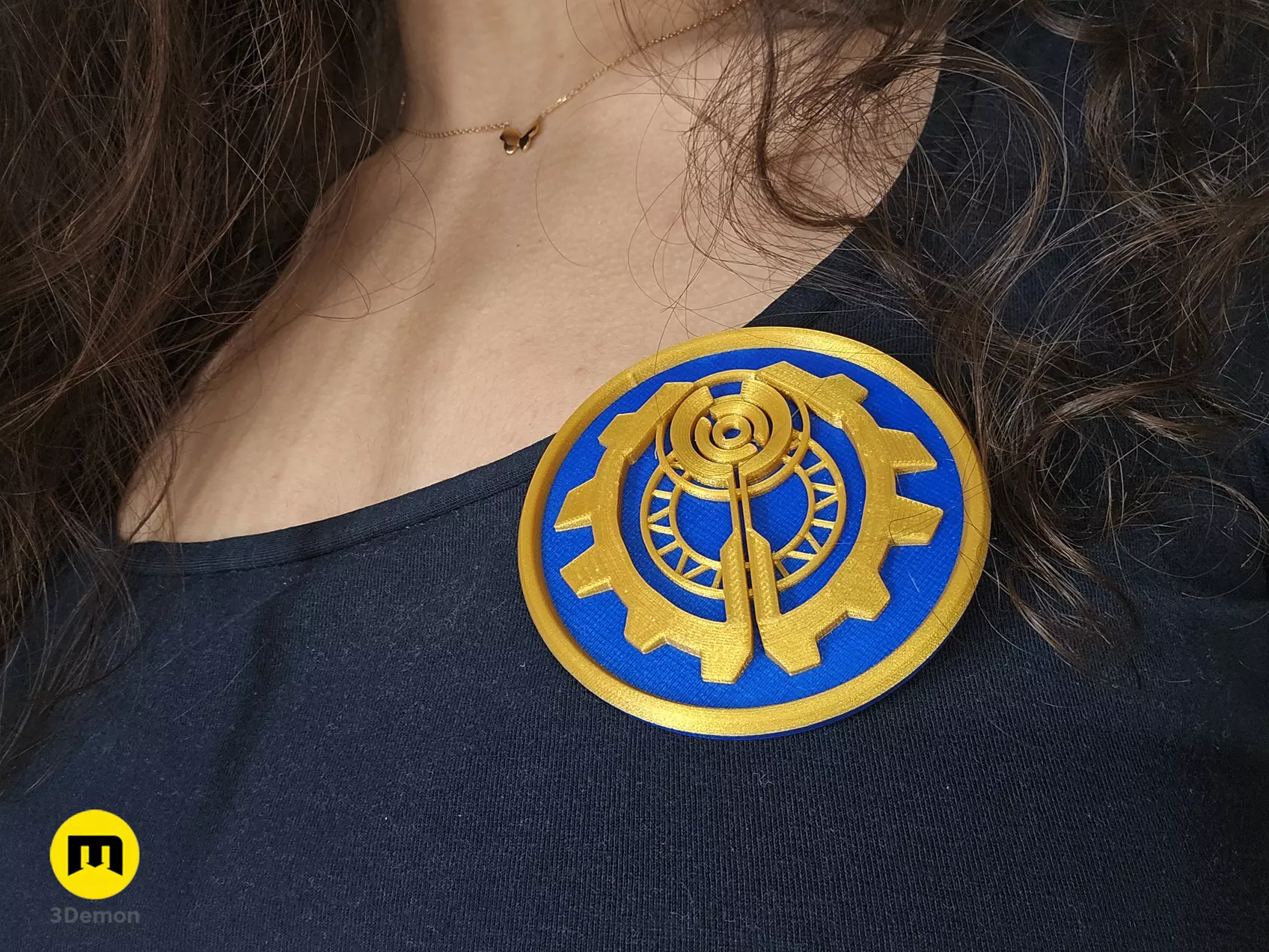 This is a digital 3D printable model of the Piltover Enforcer Badge from the series Arcane!