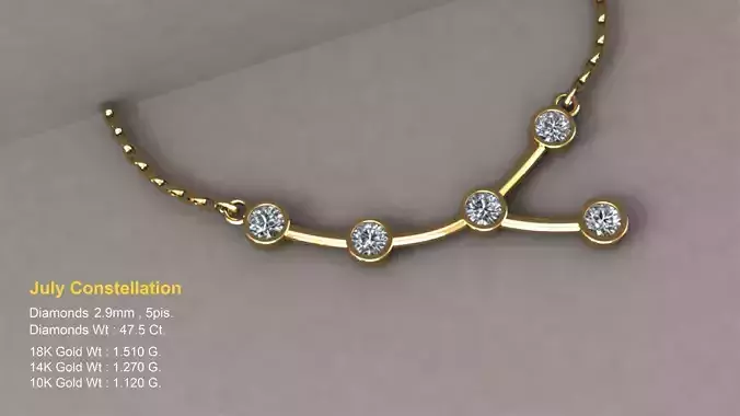 july constellation (cancer) Cancer is always well placed for viewing in March, and it is also well placed for evening viewing in April and May. Eventually, it starts to descend into the sunset glare in June.
