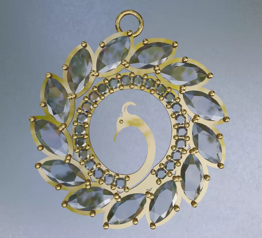 Discover the Peacock Pendant – a masterpiece capturing nature's beauty. Sterling silver forms the bird's form, adorned with vibrant gemstones. A captivating centerpiece, a dance of diamonds and an emerald eye epitomize its allure.Suspended from a sterling silver chain, this pendant is not just a piece of jewelry, but a wearable work of art that tells a story of nature's magnificence. Whether worn for a special occasion or as an everyday statement piece, the Peacock Pendant is a symbol of grace, beauty, and the awe-inspiring wonders of the natural world.Your positive review would be greatly appreciated as well!Exclusive Formats: Request formats that highlight the Peacock Pendant's elegance in a way that speaks to you.
