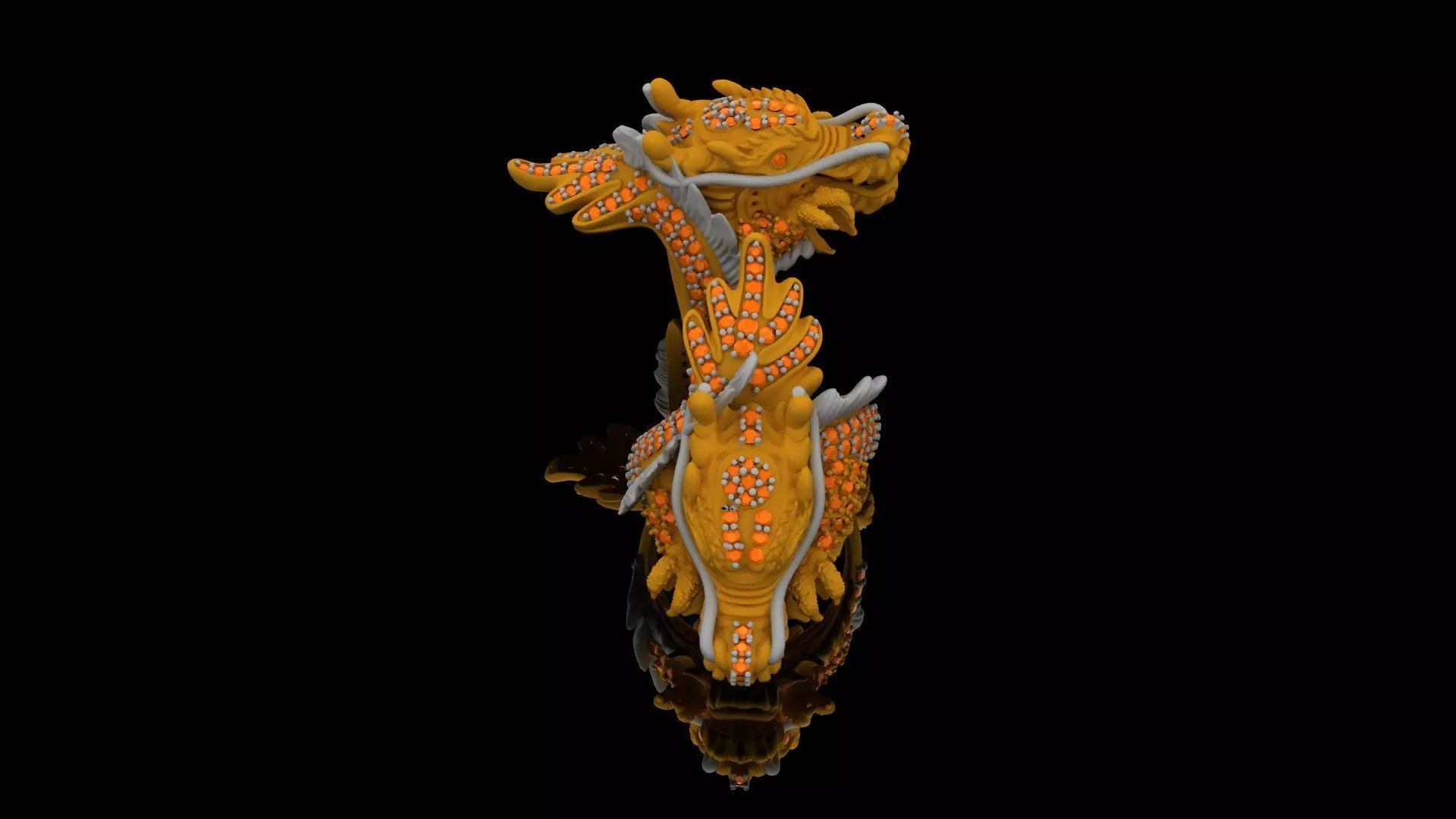 The dragon’s serpentine form, with its sharp scales, curling claws, and intricate facial features, evokes a sense of movement, as if the mythical creature is coming to life. Its powerful head, with intense, focused eyes, exudes dominance and control, while the delicate wings and horns showcase its divine connection to the heavens.